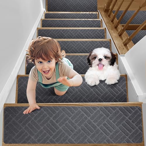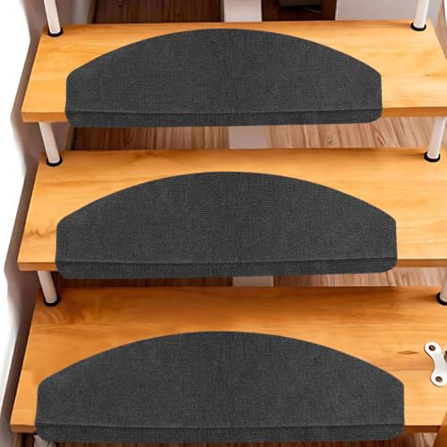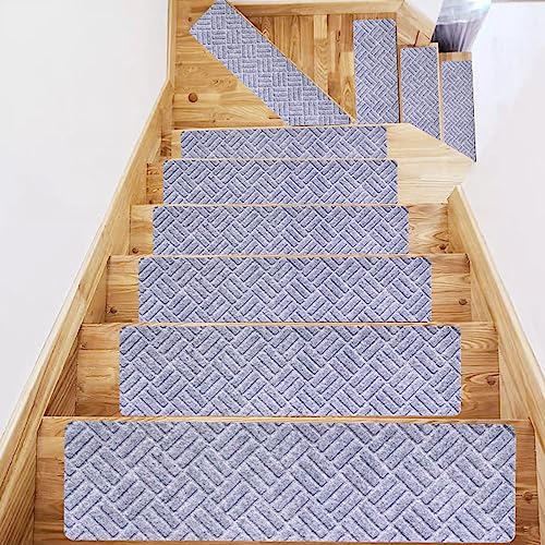 Lot de 15 Tapis Escalier Antidérapant pour Intérieurs et Extérieurs,Tapis D'escalier Polyester&Caoutchouc Fond, Couvre Marche Escalier en Moquette pour Enfants,Personnes âgées et Animaux Domestiques