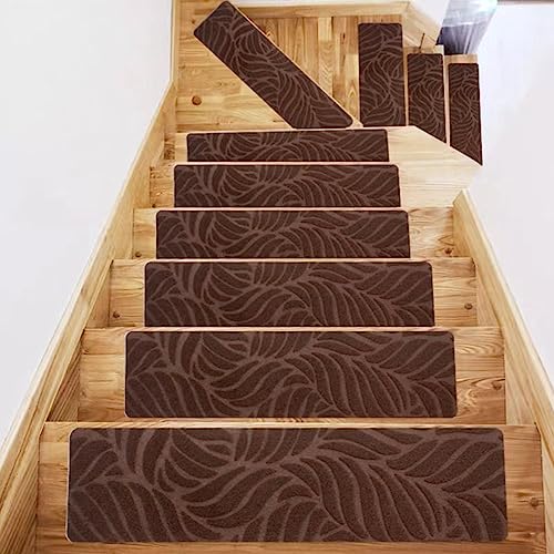 Hearda Tapis Escalier, Antidérapant Tapis Escalier Marche, Muet Moquette Escalier Couvre Marche Escalier Tapis d'Escalier Autocollants Carpette pour Aîné Enfants (15 pc,Café)
