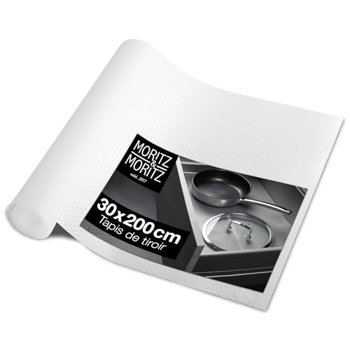 Moritz & Moritz Protection tiroir Cuisine 30x200cm - Tapis antidérapant tiroir Cuisine - comme Fond tiroir Cuisine ou Protection Meuble Cuisine - 10 Autocollants de Tableau Inclus