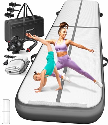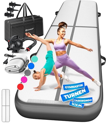KESSER® Tapis de Gymnastique | Tapis de Fitness Gonflable Airtrack | Tapis de Gymnastique 3/4/5/6 m | Sac de Transport et Batterie électrique fournis Pompe à air, Anthracite, 400 x 100 x 10 cm