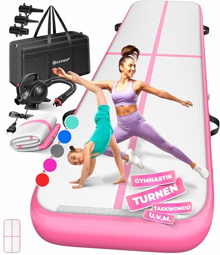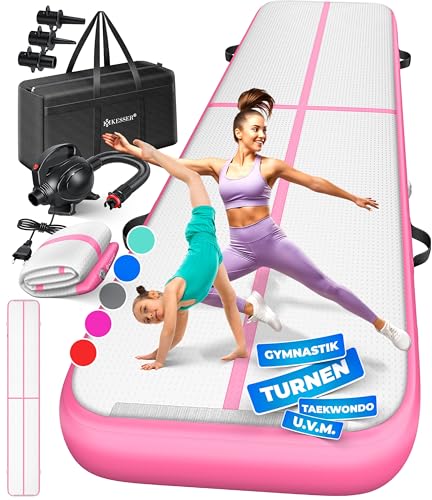 KESSER® Tapis de gymnastique | Tapis de fitness gonflable Airtrack | Tapis de gymnastique 3/4/5/6 m | Sac de transport et batterie électrique fournis Pompe à air, Rosa, 500 x 100 x 10 cm