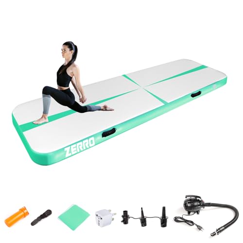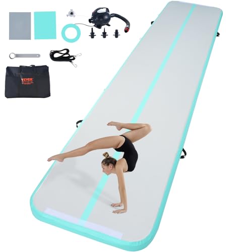 VEVOR Tapis de Gymnastique Gonflable 10 cm Épaisseur, Piste d’Acrobatie avec Pompe Électrique, Tapis d'Entraînement pour Usage Domestique/Salle de Sport/Yoga/Cheerleading/Plage/Parc, 5 m, Vert Menthe