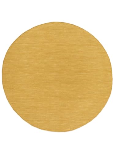 RugVista Handloom Tapis Oriental tissé à la Main, Ø 150 cm, Rond, Poil Moyen, Nettoyage à Sec, Salon, Salle de séjour, Chambre, Salle à Manger, Fabriqué à la Main, Jaune Moutarde