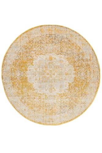RugVista Nadia Tapis Moderne, Ø 200 cm, Rond, Poil Court, Nettoyage à Sec, Salon, Salle de séjour, Chambre, Salle à Manger, Jaune