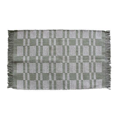 Tapis tissé en coton vert kaki L.90 x l.60 cm Ornami