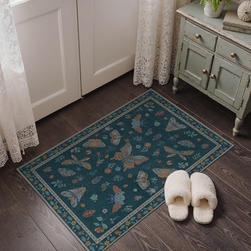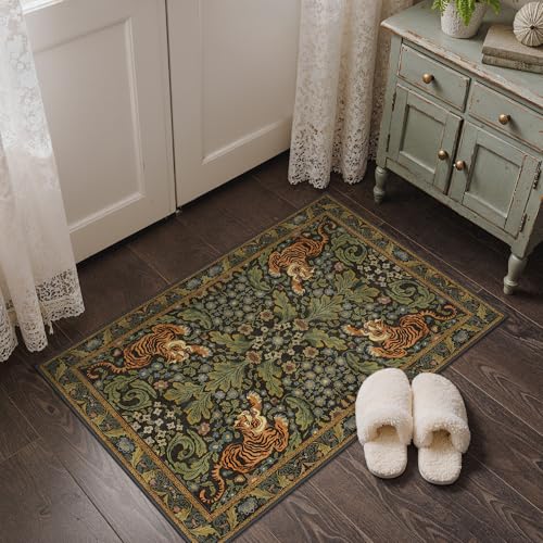 Vamcheer Tapis Salon 160x230 - Grand Tapis Vintage Lavable en Machine pour Chambre Adulte et Salle à Manger, Vert