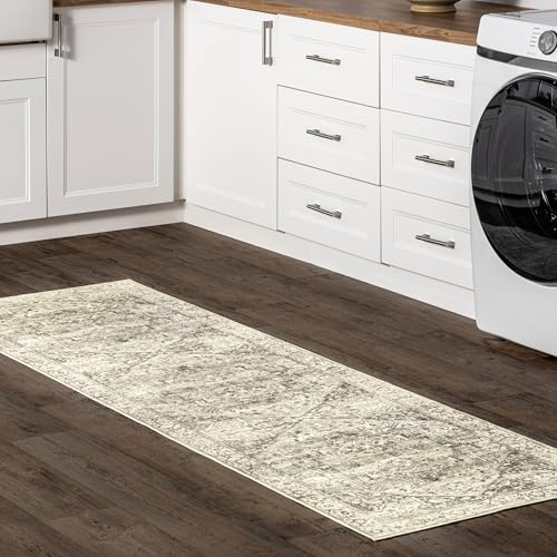 nuLOOM SpinClean Tapis antidérapant Lavable en Machine avec Revers antidérapant, Profil Bas pour Salon, Chambre à Coucher et Salle à Manger, Gris Brielle/Brun Clair