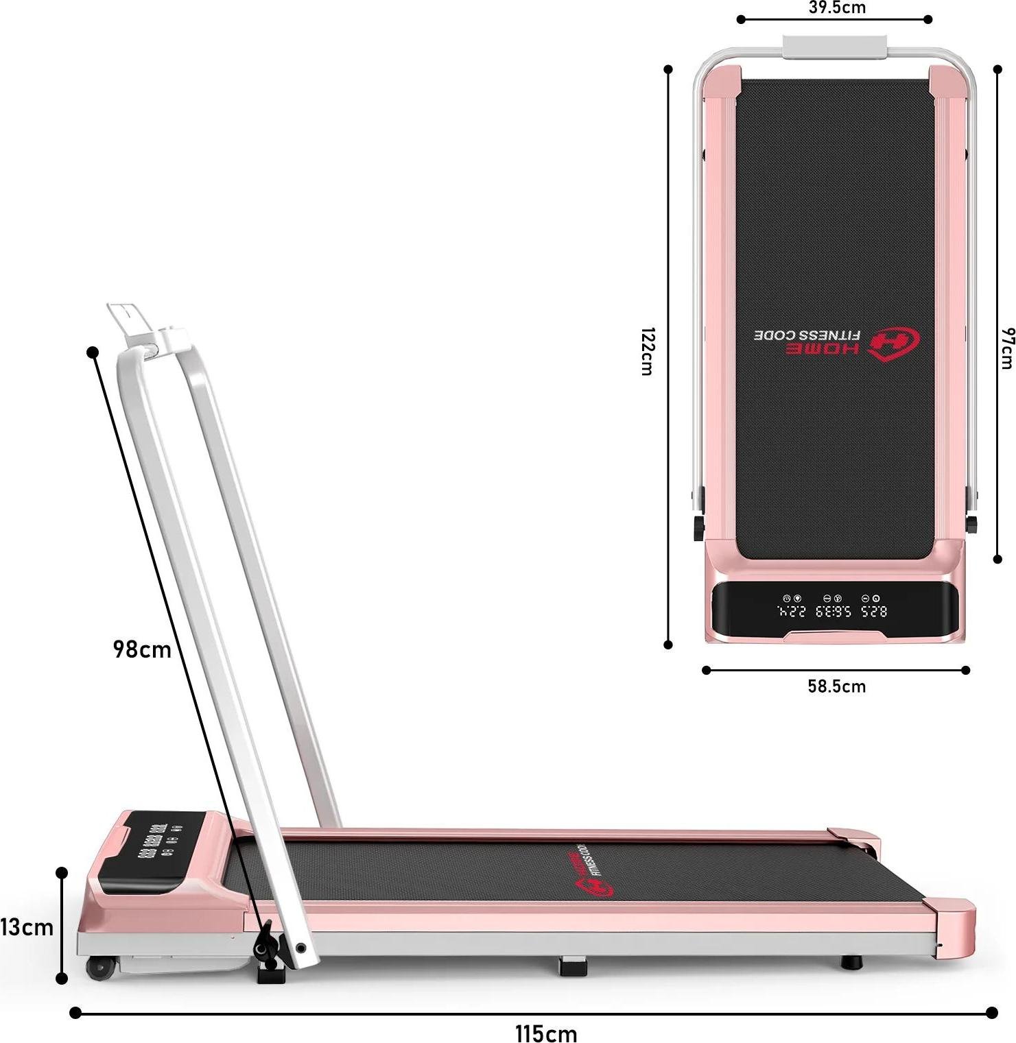 Tapis de marche - Tapis de bureau - Pliable - Vitesse 1-10 km/h - Moteur 2,5 CV - Max 120 kg - Affichage LED - 122×58,5×13 cm - Rose