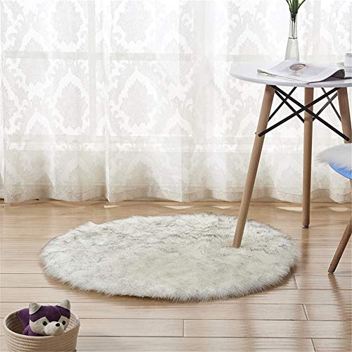 Treer Rond Soft Tapis Salon Modernes Tapis Chambre Duveteux Antidérapant Tapis à Poils Longs Grand Tapis pour Enfant Chambre, Salon, Chambre à Coucher (Blanc,Diamètre 50cm)