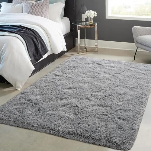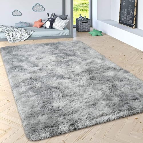 Treer Tapis Salon Tapis Grande Taille Chambre Modernes, Soft Tapis De Salon Tapis à Poils Longs Grand Tapis pour Enfant Chambre, Salon, Chambre à Coucher (120x160cm,Gris fumée)