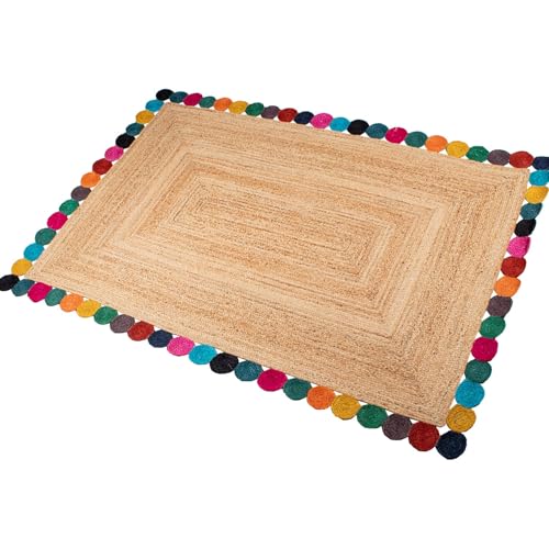 DRW Tapis en Jute Naturel avec Bords arrondis Multicolore 300 x 200 x 1 cm