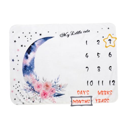 HOMSFOU Couverture Photo Mensuelle pour Bébé Motif Lune, Tapis de Photographie Doux et Graphique, Couverture de Croissance pour -né, Décoration Chambre et Souvenir Naissance
