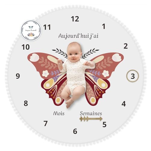 Mybabyoli Couverture Etape Bébé en Français- Tapis Photo Bebe Rond 12 Mois Fille, Garçon- Unisexe Papillon Tapis Bebe Mois- Cadeau Naissance Baby-Shower Future Maman+ Carte Bois Personnalisé. (Rose)