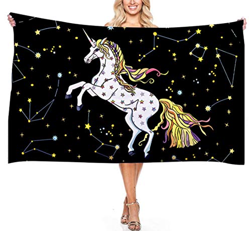 Serviette de Bain Licorne Animé 3D de Microfibre Serviette de Plage pour Enfants Fleurs Roses Fille Femme Serviette de Douche Tapis de Pique-nique Couverture Mince (Constellation, 75 x 150 cm)