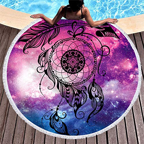 Morbuy-shop Serviette de Plage Ronde Mandala Bohemia, Drap de Plage la Tapisserie Châle Yoga Nappe Tapis de Pique-Nique Portable Tenture 150cm en Tissu Éponge 2 Clips (Capteur de rêves Violet,150cm)