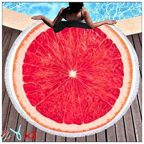 Serviette de Plage Ronde, Morbuy Drap de Plage la Tapisserie Châle Tapis de Yoga Nappe Tapis de Pique-Nique Tenture Housse de Canapé en Tissu, des Fruits, 2 Clips (150cm,Pamplemousse)