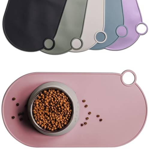 ne&no Tapis de gamelle en Silicone | pour Chats et Petits Chiens | Tapis de gamelle pour Chat imperméable | Tapis de Nourriture antidérapant | Tapis en Silicone avec Boucle de Suspension 49 x 25 cm