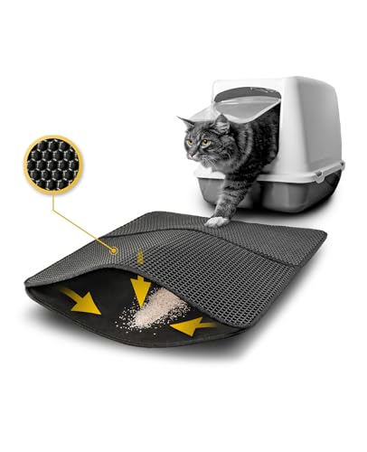 lionto Tapis de litière pour chat avec couche antidérapante, 76x61x1,3 cm, tapis de litière pour chat imperméable et facile à nettoyer, capture efficace de la litière en design nid d'abeille, noir