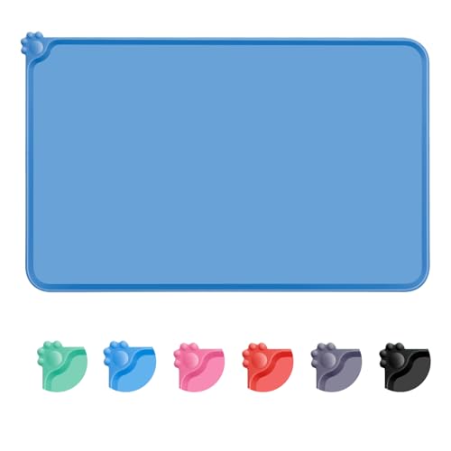 MOACC Tapis Gamelle Chien, Tapis d’Alimentation pour Chat en Silicone aux Normes FDA, Imperméable et Antidérapant, Bleu, 47 X 30 cm