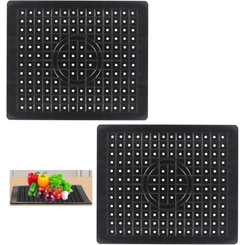 Noir Lot de 2 tapis de protection pour évier de cuisine en caoutchouc antidérapant durable, facile à nettoyer et à couper soi-même.