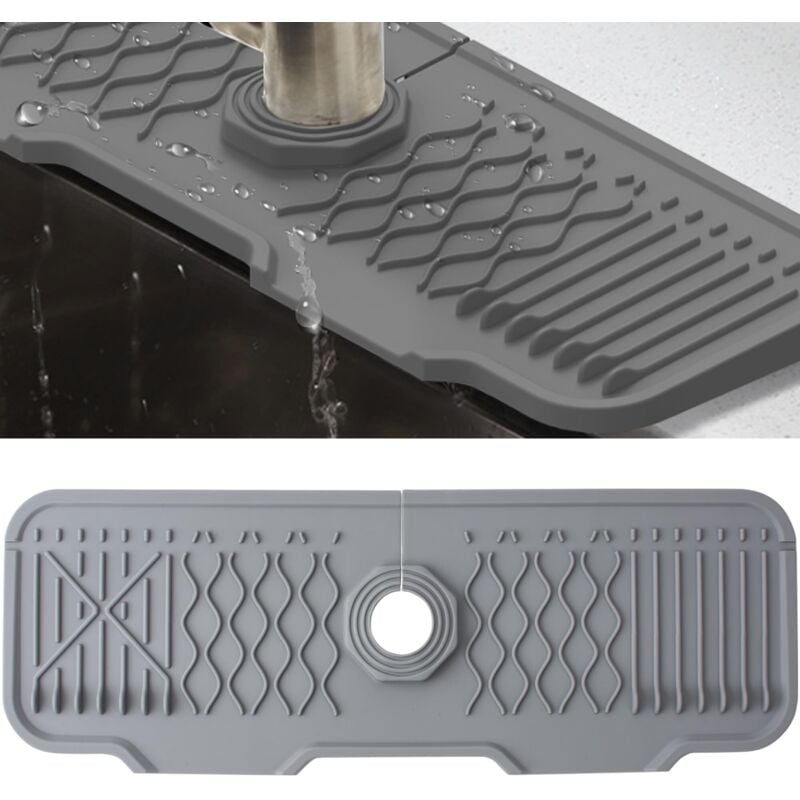 Tapis de Robinet Silicone, Protection Anti-Éclaboussures pour Robinet d'Évier, Tapis d'Évier pour Comptoir de Cuisine et de Salle de Bain (Gris, 30