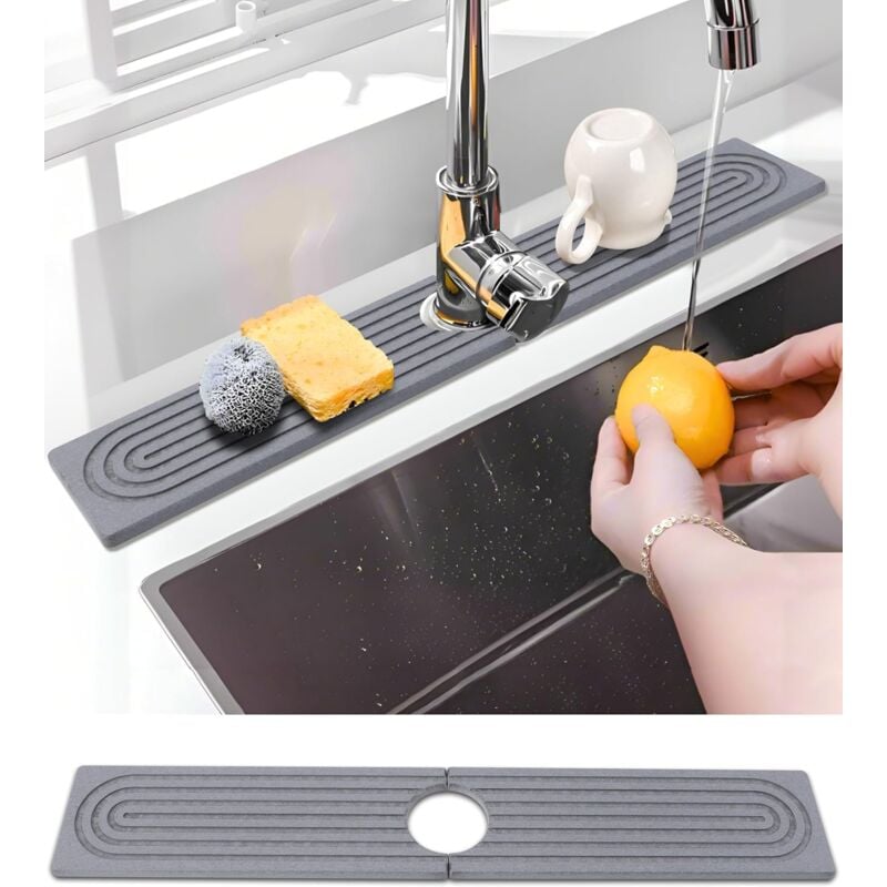 Knubbuf Contour de Robinet Absorbant, Tapis Robinet Absorbant, Pierre absorbante evier, Tapis de Robinet pour évier de Cuisine, séchage Rapide, Super Absorbant (A-Gris, 60 * 10cm)