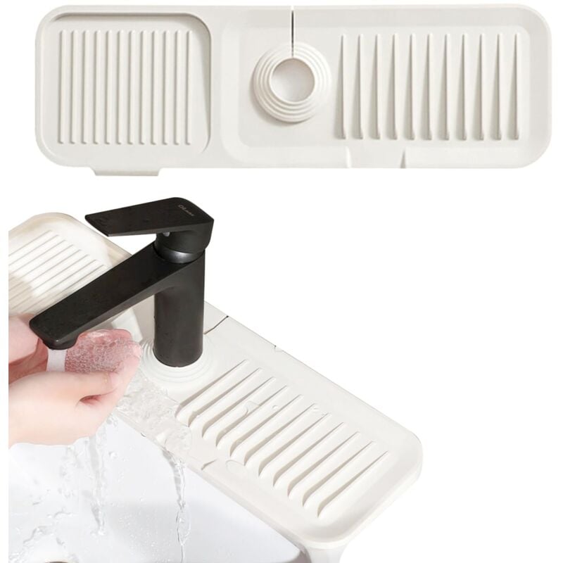 Knubbuf Contour de Robinet Absorbant, Tapis Robinet Absorbant, Pierre absorbante evier, Tapis de Robinet pour évier de Cuisine, séchage Rapide, Super Absorbant (A-Blanc, 40 * 10cm)