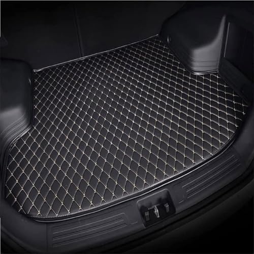 Voiture Cuir Tapis de Coffre pour Ford Fiesta 2017 2018 2019 2020 2021 2022 2023 2024 2025, Couverture Complète Antidérapant Étanche Coffre Protection Tapis Voiture,Black+Beige