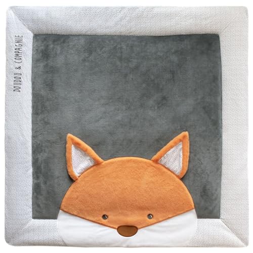 Doudou et Compagnie - Tapis d'Eveil Bébé - Tapis de Jeu Renard Gris - 100 x 100 cm - Pour Bébé 0-6 Mois - Tapis Rembourré Confort Adapté au Parc - Idée Cadeau De Naissance - Carré - Tapidou - DC3716