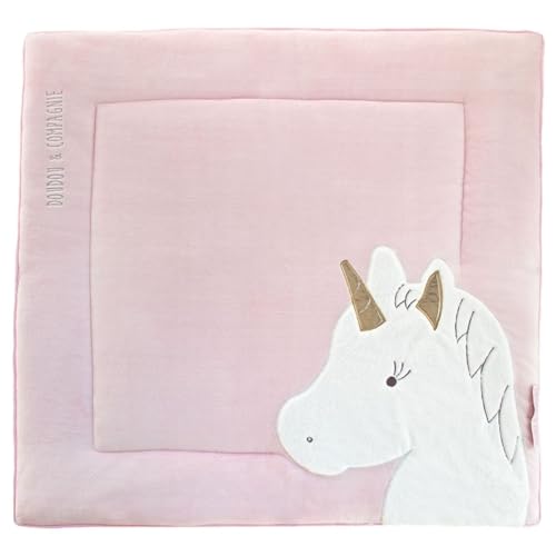DOUDOU ET COMPAGNIE - Tapis d'Éveil Bébé Licorne Rose/Or 100x100 cm - Pour Bébé 0-6 Mois - Jeu Rembourré et Confortable - Adapté au Parc ou au Sol - Idée Cadeau Naissance - Tapidou - DC3318