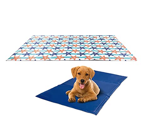 Record Tapis rafraichissant pour Chiens et Chats Stay Fresh – Fantaisie étoile de mer Bleu et Orange 80 x 90 cm – Matelas Auto-refroidissant en Gel Non Toxique – Imperméable et Peu encombrant