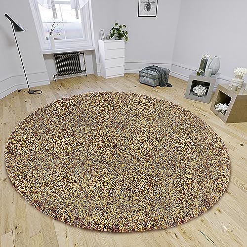 Carpettex Teppich Tapis Rond pour Le Salon, Design uni à Poil Long, Moderne et Moelleux, Couleur: Crème, Taille: 120 cm Rond
