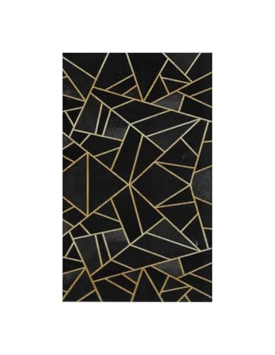 Mani Textile Tapis de Salon Moderne Grafic Noir/Jaune Doré- Lavable en Machine et Antidérapant (50_x_80_cm)