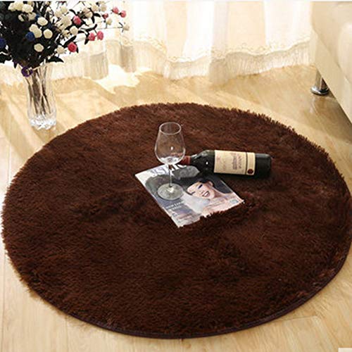 Treer Tapis Salon Shaggy Poil Long Ronde, Tapis de Yoga Lavable Design Moderne Anti-Dérapant Chaise Canapé Natte pour Intérieur, Séjour, Chambre, Couloir, Cuisine (Marron,40cm)