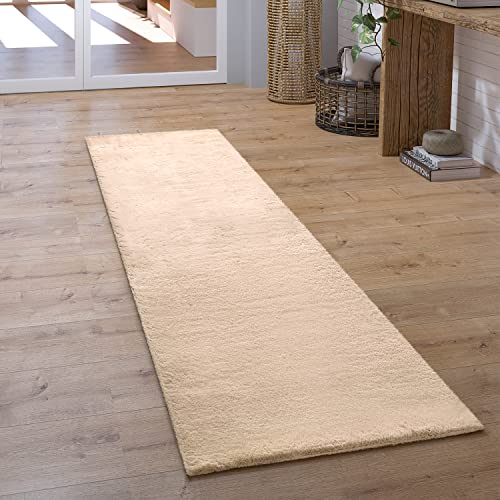 Paco Home Tapis Salon Poil Long Tapis Couloir Chambre Tapis Shaggy Poil Long Moelleux Fausse Fourrure Tapis Moderne Monochrome, Dimension:80x150 cm, Couleur:Beige