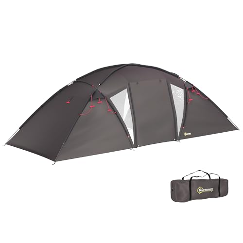 Outsunny Tente de Camping familiale pour 4-6 Personnes, Tente Tunnel imperméable 3000 mm avec 2 Portes, fenêtres, Sac de Transport, Tapis de Sol pour Camping Voyage randonnée Jardin, Noir