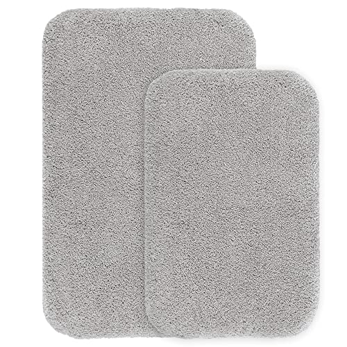 VANZAVANZU Tapis de Bain Antidérapant Paquet de 2 Tapis Salle de Bain Épaissi Tapis Sortie de Douche Absorbant Tapis de Sol Ultra Doux en Microfibre - 50 x 80cm (Gris Clair)