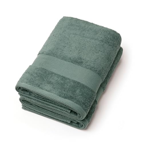 Pure Coton Tapis de Bain en Coton Jacquard Tissé - Certifié Oeko-TEX® Standard 100 - Descente de Bain Salle de Bain, Sortie de Douche - Absorbant - 60 x 100 cm - Vert Bouteille
