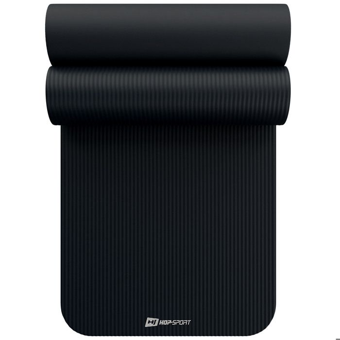 Tapis de fitness 190x60x2 cm Hop-Sport Tapis de sport antidérapant Tapis de yoga en mousse NBR + sangle de transport Noir