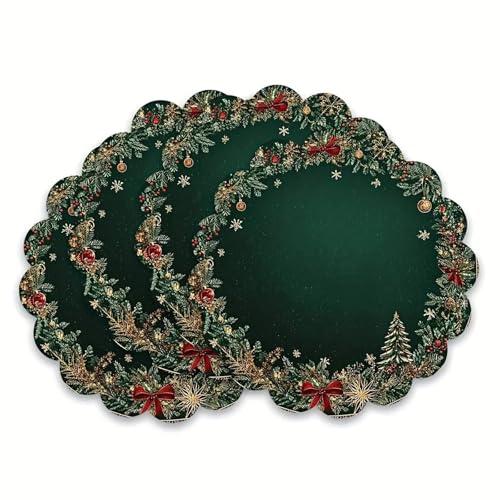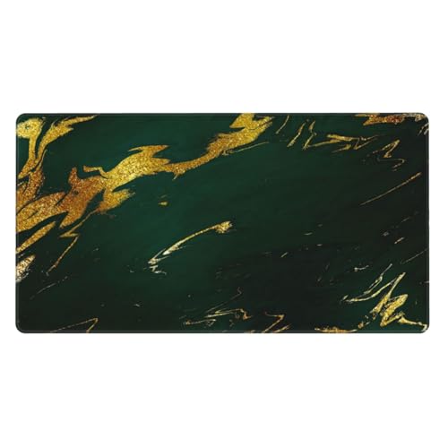 Tapis de Souris carré 10 et 12 Pouces, Motif géométrique Art déco, Vert émeraude et Or, Bords Cousus