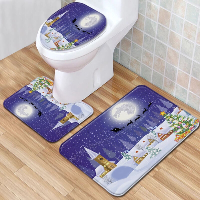 Tapis contour wc Lot de 3 tapis de salle de bain antidérapants avec imprimé Père Noël - Super absorption d'eau - Tapis de bain doux pour salle de