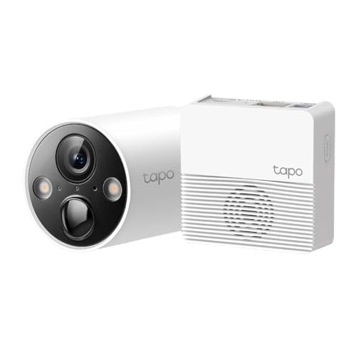 Tapo Caméra de sécurité extérieure sans fil 2K QHD, 1 caméra avec concentrateur inclus, batterie rechargeable de 180 jours, 4 MP, vision nocturne en couleur, détection AI, stockage SD, fonctionne avec
