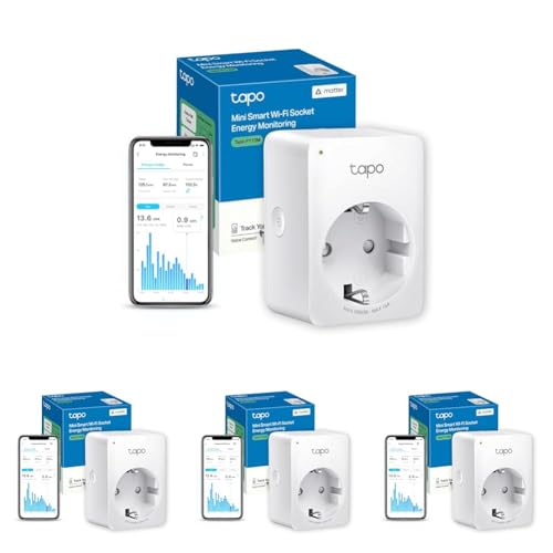 Tapo Matter Prise Connectée WiFi, Suivi de consommation, 16A Type F, Compatible avec Alexa, Google Home et SmartThings, Contrôler Le radiateur, Le Chauffage, Économie d'énergie, Tapo P110M (Lot de 4)