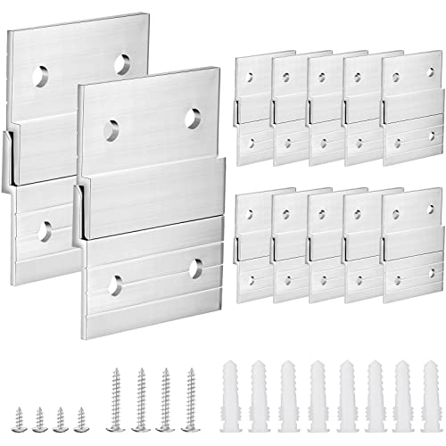 Nuogo Lot de 24 crochets de suspension à taquet français de 5,1 cm en aluminium robuste avec vis, kit de suspension pour miroir, supports de montage emboîtables pour étagère murale, cadre d'art