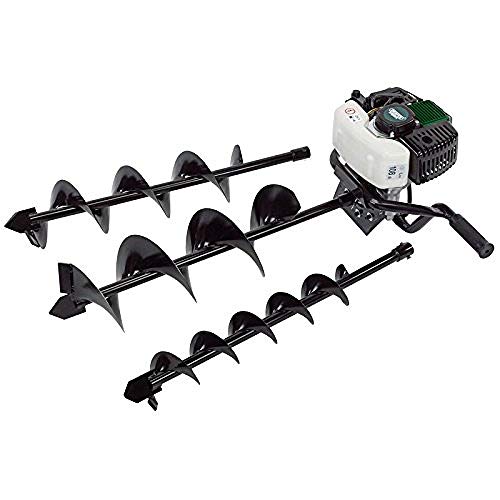 DEMON - Tarière thermique avec moteur à explosion 62 cc, 5,2 CV, avec 3 pointes Ø100 mm, 150 mm, 200 mm + rallonge, mélange essence/huile, perceuse de jardin