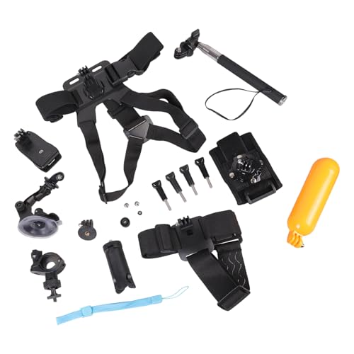 Ensemble complet d'accessoires pour caméra d'action : sangle de poitrine, support à selfie, tasse d'absorption pour la finition de mouvement, structure de montage pour caméras de sport, y compris
