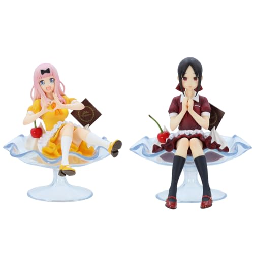 DEXSHUN Fujiwara Chika Lot de 2 figurines Anime Shinomiya Kaguya/Fujiwara Chika Tasse à dessert assise Modèle PVC Figurine d'action Anime Merch Décoration Cadeau pour les fans 13 cm