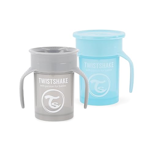 2 x Twistshake 360 Cup Gobelet d'Apprentissage à Boire à Bec 230 ml, Tasse d'Entraînement Bébé à Bec, Bordure 360° Antifuites, Ergonomiques, Sans BPA, 6+ Mois et, Gris Pastel & Bleu Pastel