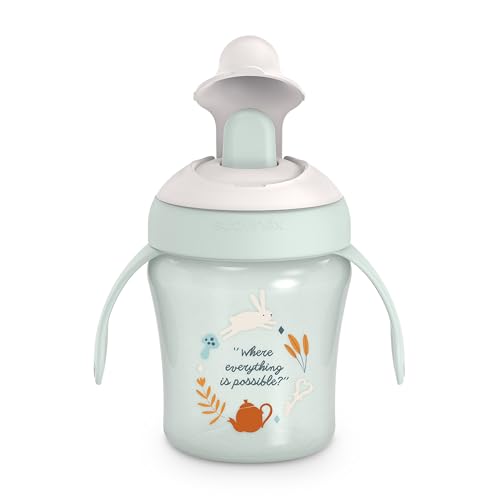Suavinex, Tasse d'Apprentissage avec Bec Rigide. Gobelet Bébé Anti Fuite avec Couvercle Rabattable et Anses. Passe au Lave-Vaisselle. Trainer Cup 200 ml. Verre Bébé et Enfats +6 Mois. Wonderland Vert
