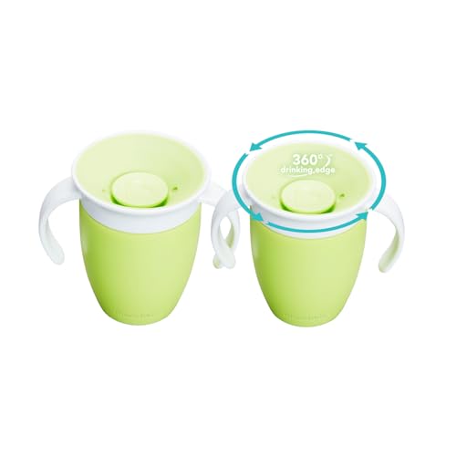 Munchkin Tasses Miracle 360 Bébé | Gobelet à Flux Libre pour Tout-Petits | Tasse d'Apprentissage | Sans BPA | Sans Déversement | Bouteille d'Eau Bébé | 207 ml | 6m+ | Pack de 2 | Vert